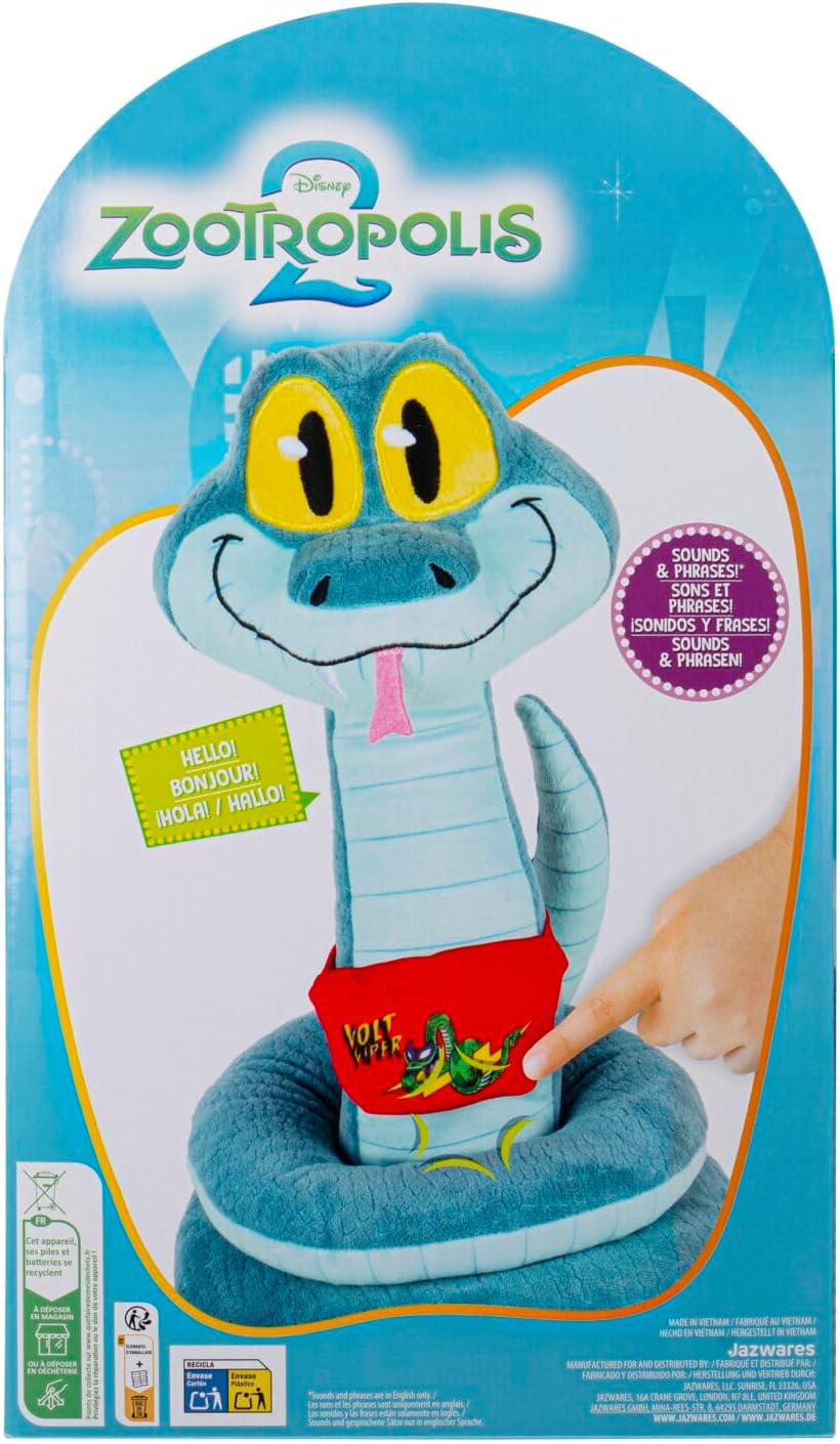 Gary De’Snake n’est pas un serpent ordinaire : il s’agit d’un crotale unique, affichant des yeux jaunes perçants et un accessoire tendance — un sac banane Volt Viper. La peluche s’inspire directement de l’univers coloré et dynamique de Zootopie 2, où l’humour et l’aventure se mêlent pour créer une expérience inoubliable. En apportant cette peluche dans leur quotidien, les enfants peuvent recréer leurs scènes préférées du film tout en laissant libre cours à leur imagination.