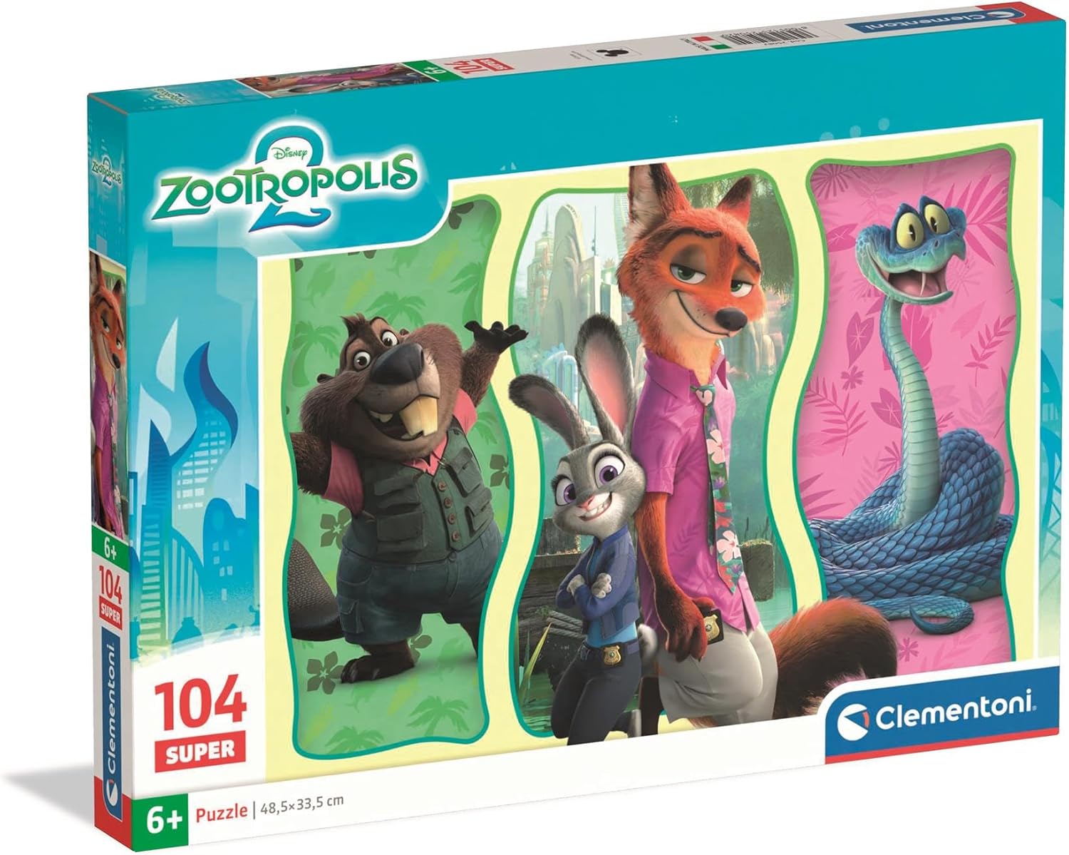 Le puzzle CLEMENTONI PZL 104 Super Zootopie 2 est composé de 104 pièces, offrant un équilibre parfait entre complexité et plaisir.