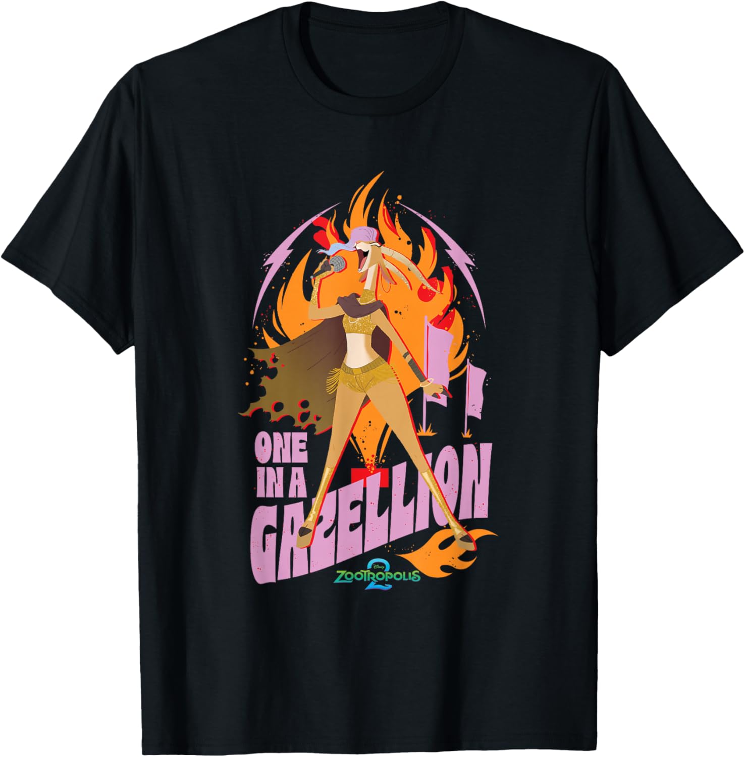 Gazelle, interprétée par la talentueuse Shakira, est une icône de la scène musicale de Zootopie. Son style unique et sa personnalité rayonnante ont captivé le public dès sa première apparition. Le T-shirt Gazellion s’inspire directement de son image, offrant un design moderne et stylé qui reflète l’énergie et le charisme de Gazelle.