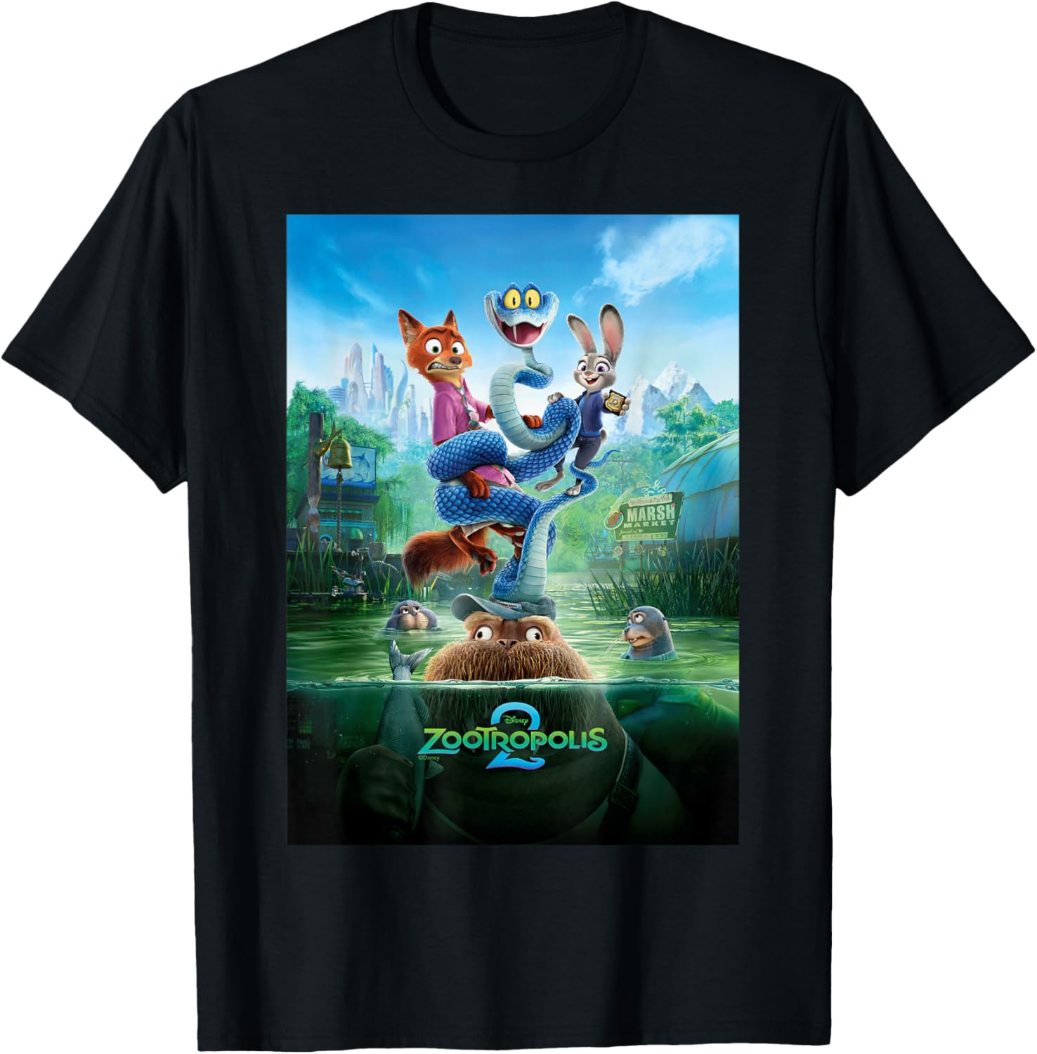 Bienvenue dans la ville animale de Zootopie avec le très attendu deuxième volet de l’animation « Zootopie 2 ». Ce T-shirt graphique officiel de Disney, également disponible en pull à capuche, met en avant un art de poster coloré et amusant qui célèbre les personnages préférés des fans : Judy Hopps, Nick Wilde, Gary De’Snake et Russ le morse, le tout dans le milieu vibrant du Marsh Market. La présence du logo accrocheur du film n’est qu’un bonus ajoutant à l’attrait de ce vêtement stylé.
